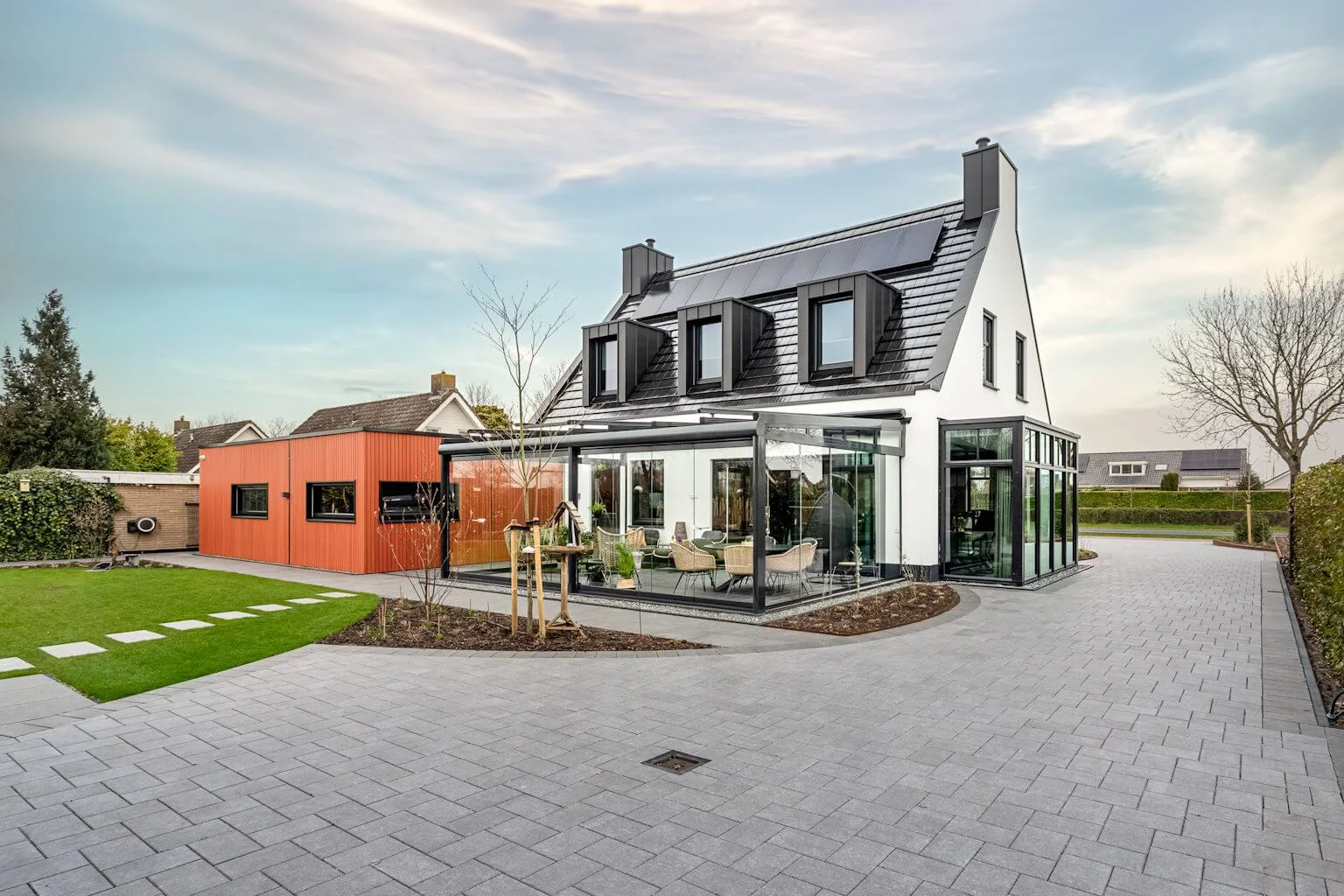 Omdat RIWOOD PK rijstvliescomposiet gevelprofielen van het type holkamer zijn, wordt er bespaard op gewicht. Dit is met name bij de elektrische garagedeur erg prettig. Er hoefden geen speciale deursystemen aangelegd te worden. De garagedeur is op deze wijze praktisch onzichtbaar waardoor het esthetisch geheel klopt.