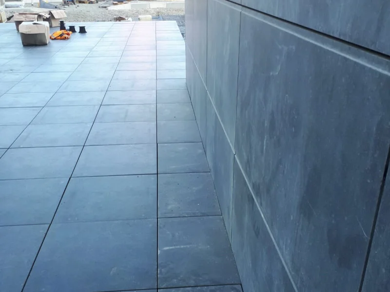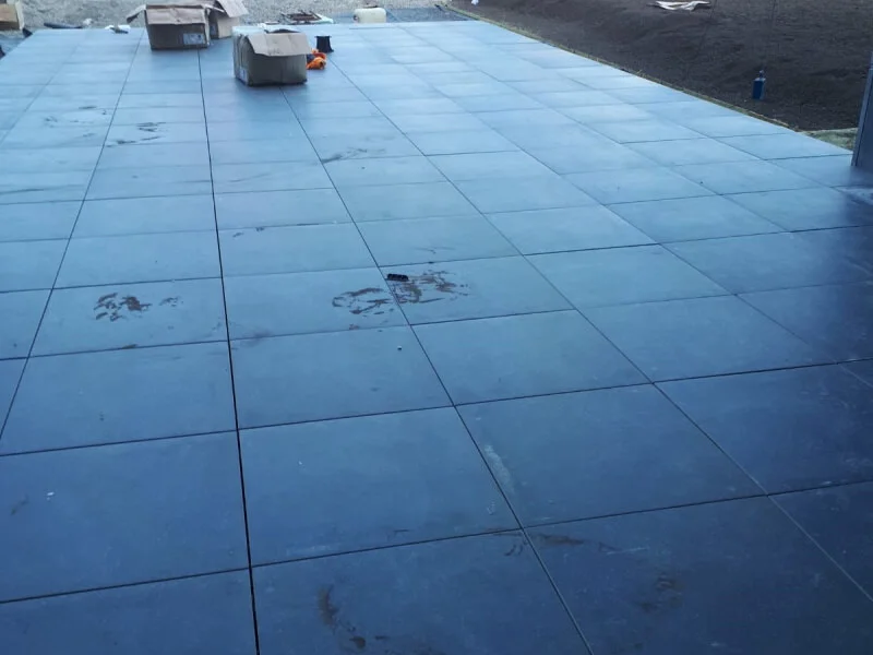 Door de combinatie van de MAX drager en het vulrubber bereikten we moeiteloos de juiste hoogte. Hierdoor werd ook contactgeluid effectief verminderd. Daarnaast zorgden de grotere voegbladen van 5 mm voor een optimale afwatering van het terras.